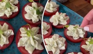 Recept na veľmi chutnú paradajkovú desiatu. Odkaz skopírovaný Rýchly predkrm, ktorý sa stane hviezdou stola / Koláž: My, foto: snímky z videa...